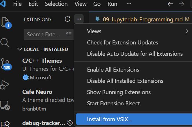 Go to the extension pane and select the three dots to install it from a local source: